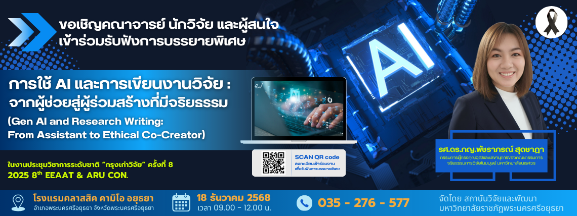 มหาวิทยาลัยเวสเทิร์น ประชาสัมพันธ์การประชุมวิชาการและนำเสนอผลงานวิจัยระดับชาติ ครั้งที่ 27 เรื่อง "จริยธรรมและความรับผิดชอบการใช้ AI จากเครื่องมือสู่การกำกับดูแลงานวิจัย และวิชาการ" ระหว่างวันที่ 22 - 23 พฤศจิกายน 2568 ณ อาคารคณะทันตแพทยศาสตร์ มหาวิทยาลัยเวสเทิร์น วิทยาเขตวัชรพล (ลงทะเบียน ชำระเงินและส่งบทความ15 กันยายน - 31 ตุลาคม 2568)