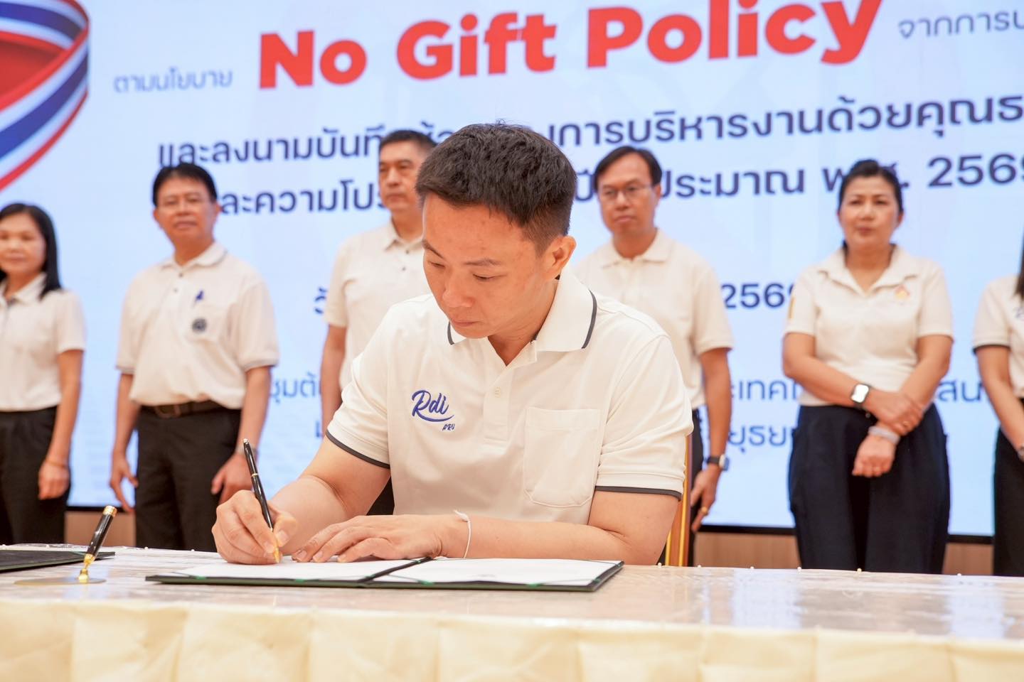 คณะผู้บริหาร คณาจารย์ และบุคลากร คณะวิทยาศาสตร์และเทคโนโลยี ได้เข้าร่วมพิธี ประกาศเจตนารมณ์ No Gift Policy เดินหน้ายกระดับคุณธรรมและความโปร่งใส ประจำปี 2569