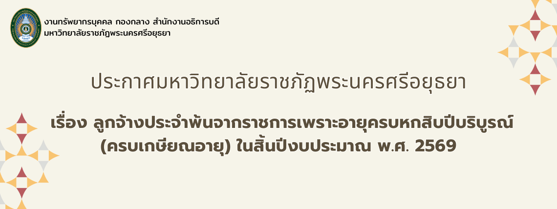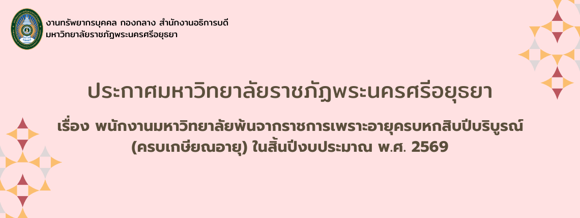 ประกาศมหาวิทยาลัยราชภัฏพระนครศรีอยุธยา เรื่อง ผู้ผ่านการสอบแข่งขันเพื่อบรรจุและแต่งตั้งเป็นพนักงานมหาวิทยาลัย ตำแหน่งประเภทวิชาการ ครั้งที่ 26/2568 (สังกัดคณะมนุษยศาสตร์และสังคมศาสตร์)