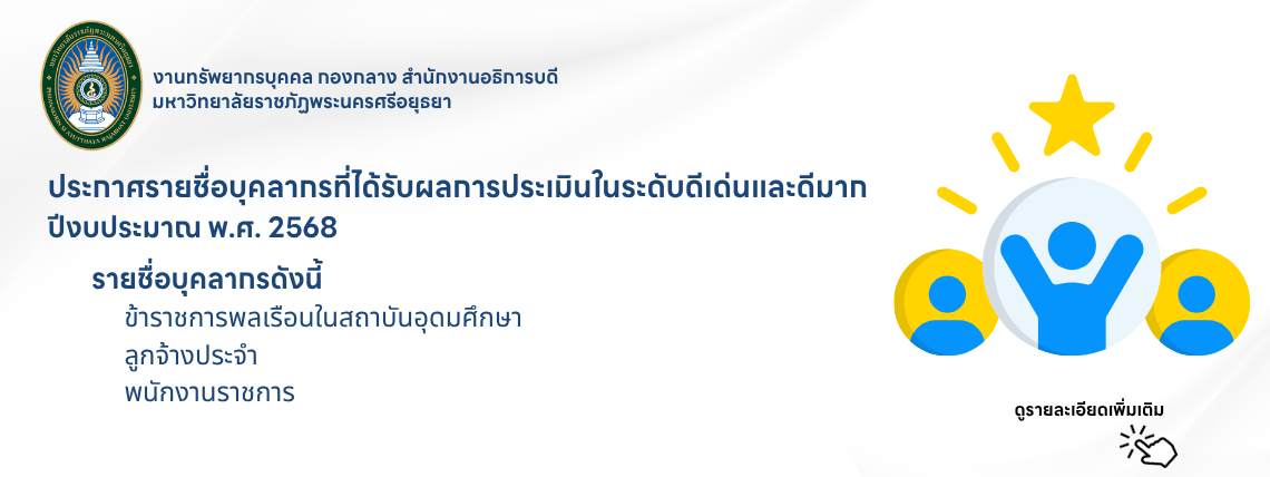 ประกาศมหาวิทยาลัยราชภัฏพระนครศรีอยุธยา เรื่อง รับสมัครบุคลากรเพื่อขอรับทุนกู้ยืมเพื่อการศึกษาจากกองทุนพัฒนาบุคลากร ประจำปีการศึกษา 2568 (รอบ 2)