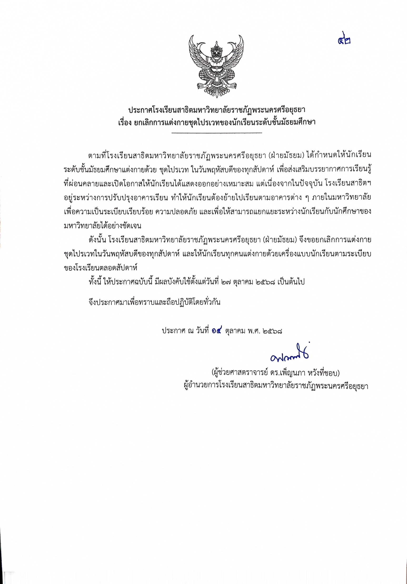 การลงชื่อแสดงเจตจำนงเข้าศึกษาต่อโรงเรียนสาธิต 4 ระดับชั้น ประจำปีการศึกษา 2569 กรณีสวัสดิการบุคลากร สังกัด มรภ.อยุธยา โดยสามารถลงชื่อแสดงความจำนงได้ที่สำนักงานผู้อำนวยการโรงเรียนสาธิต ได้ตั้งแต่วันที่ 1 สิงหาคม 2568 ถึงวันที่ 31 สิงหาคม 2568 พร้อมแนบเอกสารใบรับรองการปฏิบัติงาน และสำเนาทะเบียนบ้านของนักเรียน