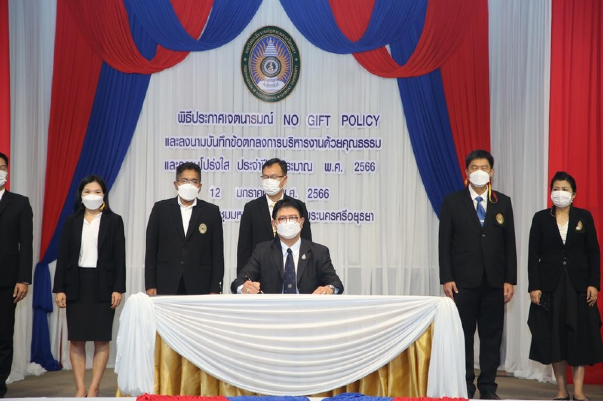 มหาวิทยาลัยราชภัฏพระนครศรีอยุธยา ประกาศเจตนารมณ์ No Gift Policy และลงนามบันทึกข้อตกลงการบริหารงานด้วยคุณธรรมและความโปร่งใส