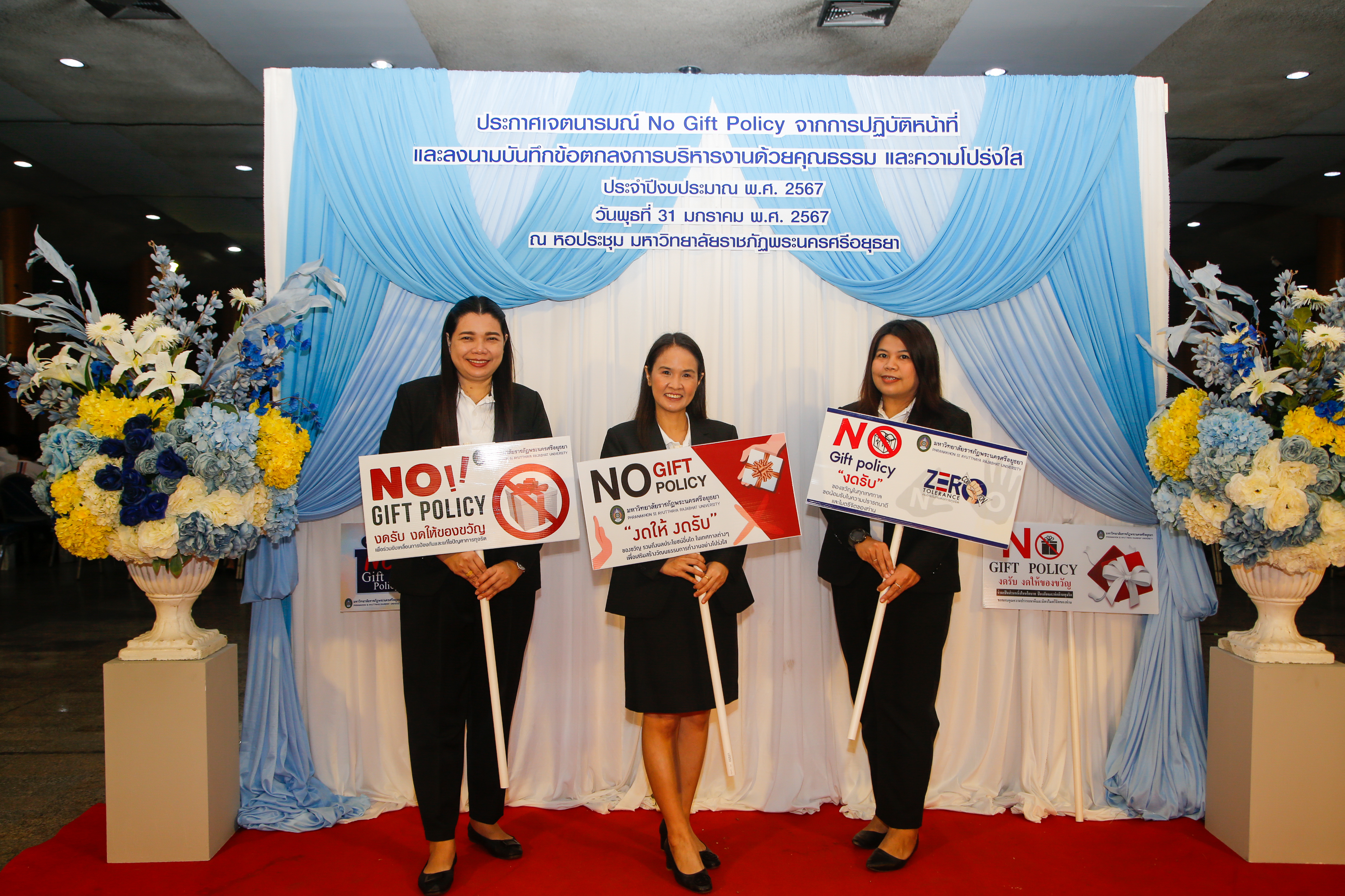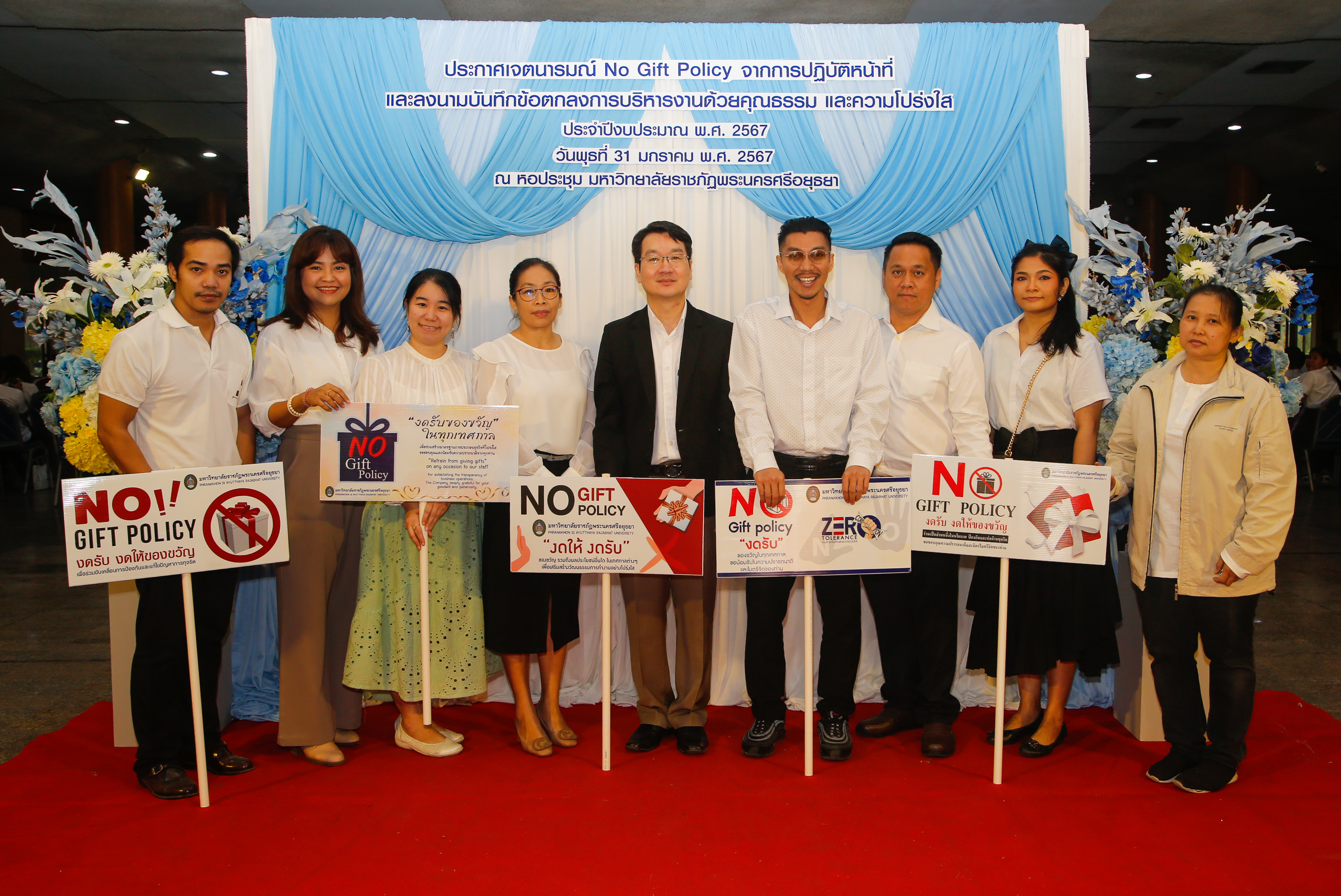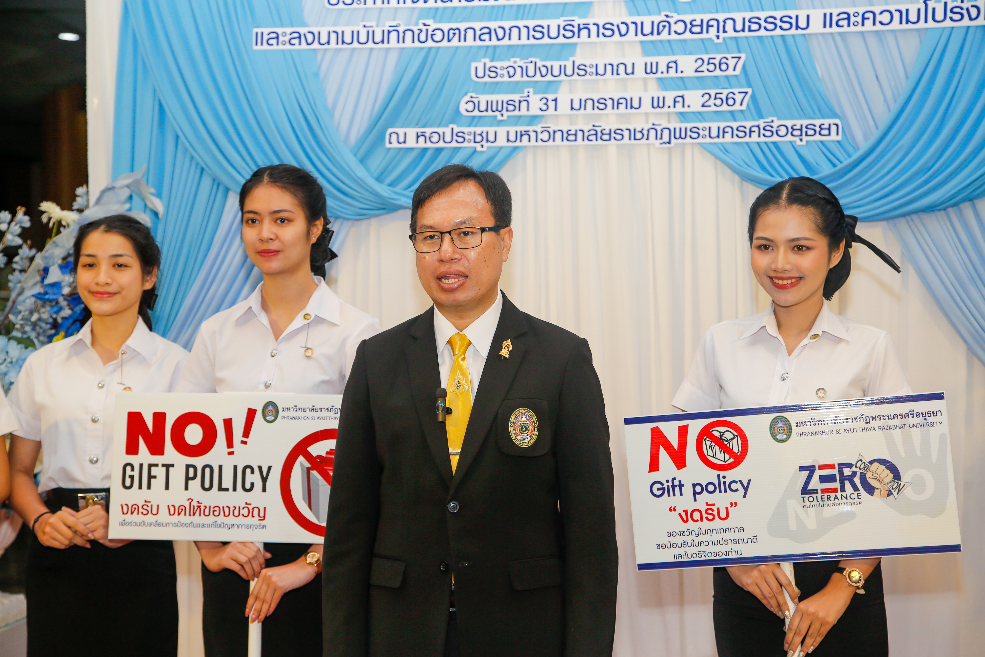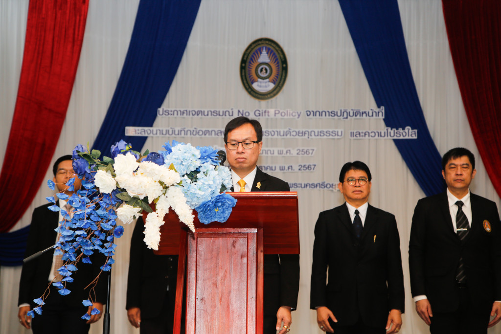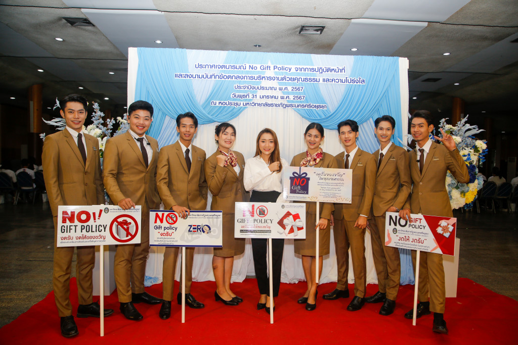 มหาวิทยาลัยราชภัฏพระนครศรีอยุธยาประกาศเจตนารมณ์ No Gift Policy และลงนามบันทึกข้อตกลงการบริหารงานด้วยคุณธรรมและความโปร่งใส