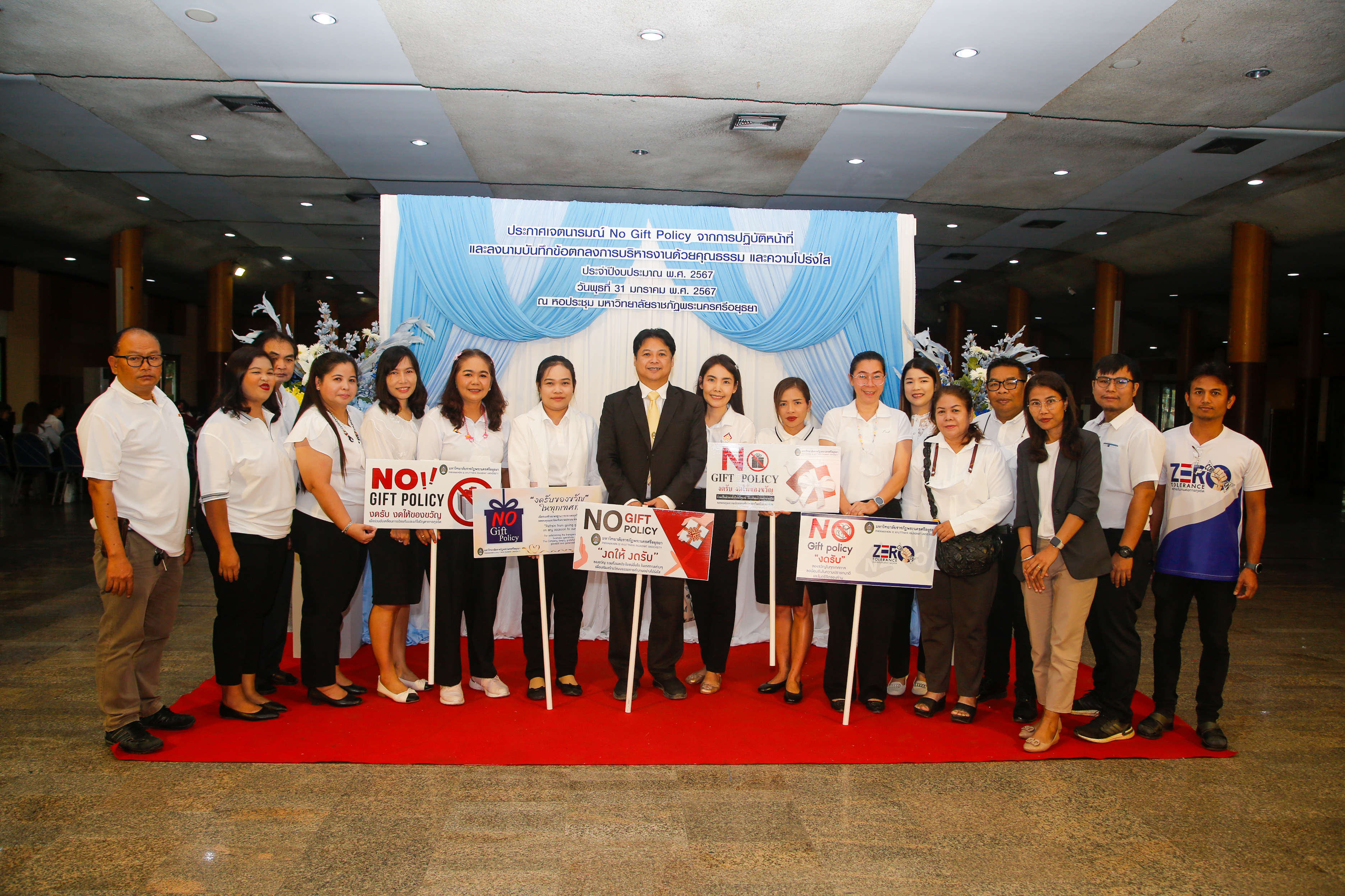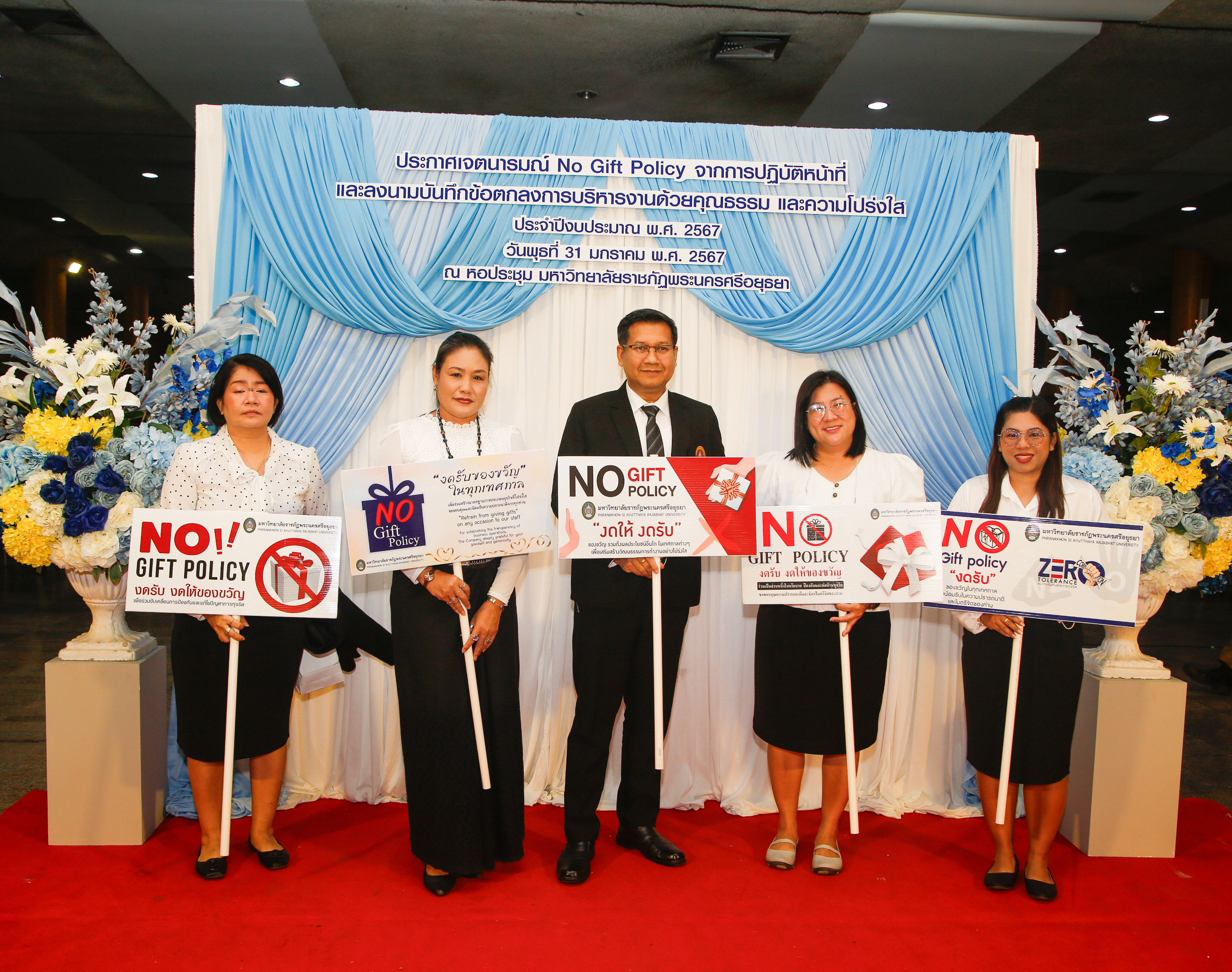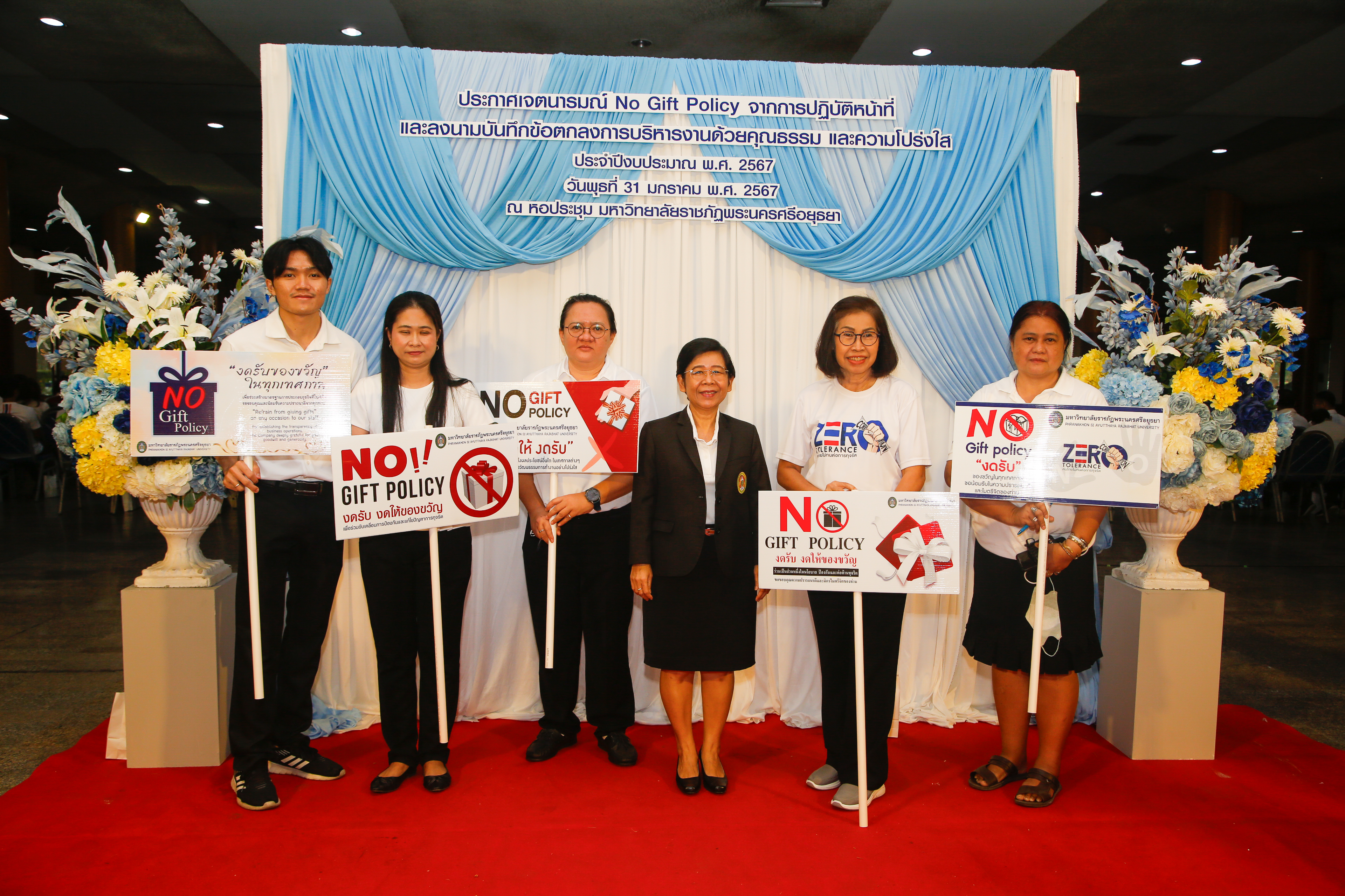 มหาวิทยาลัยราชภัฏพระนครศรีอยุธยาประกาศเจตนารมณ์ No Gift Policy และลงนามบันทึกข้อตกลงการบริหารงานด้วยคุณธรรมและความโปร่งใส