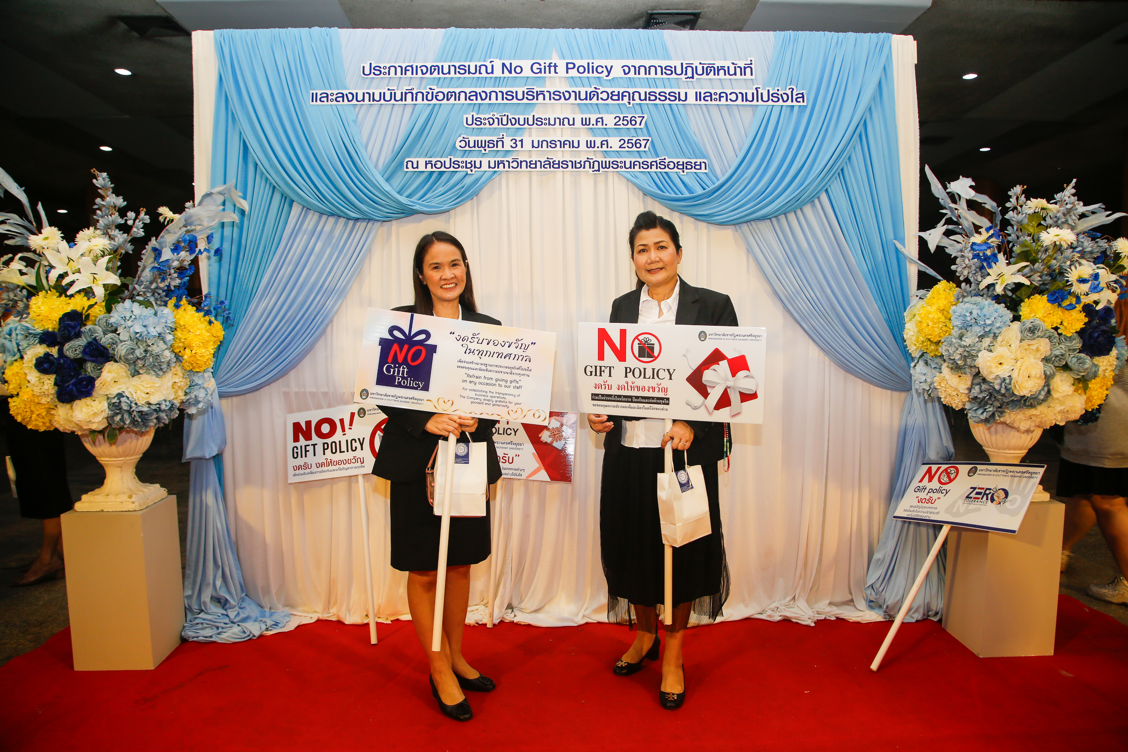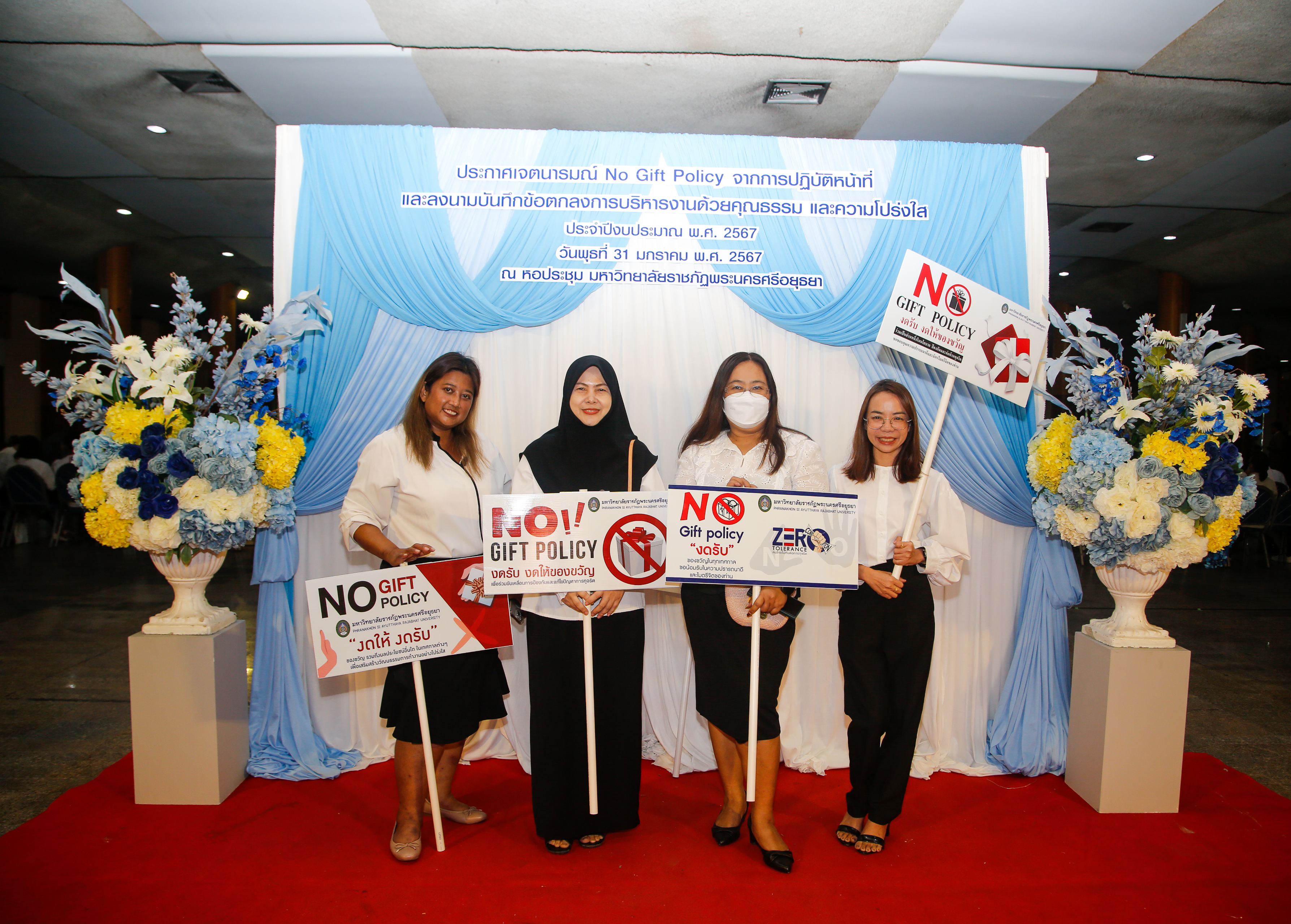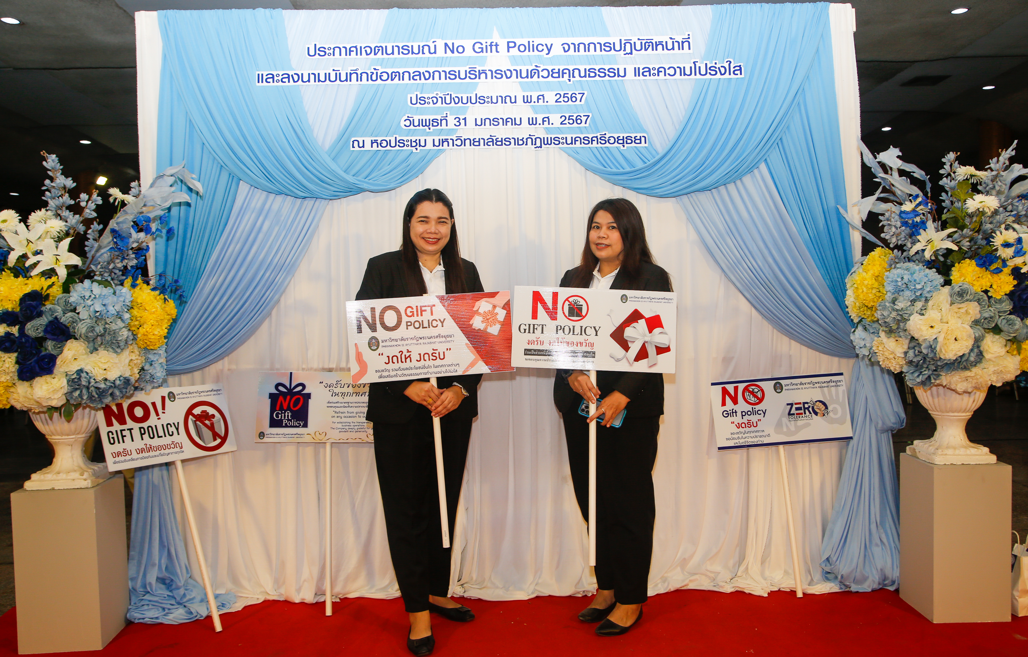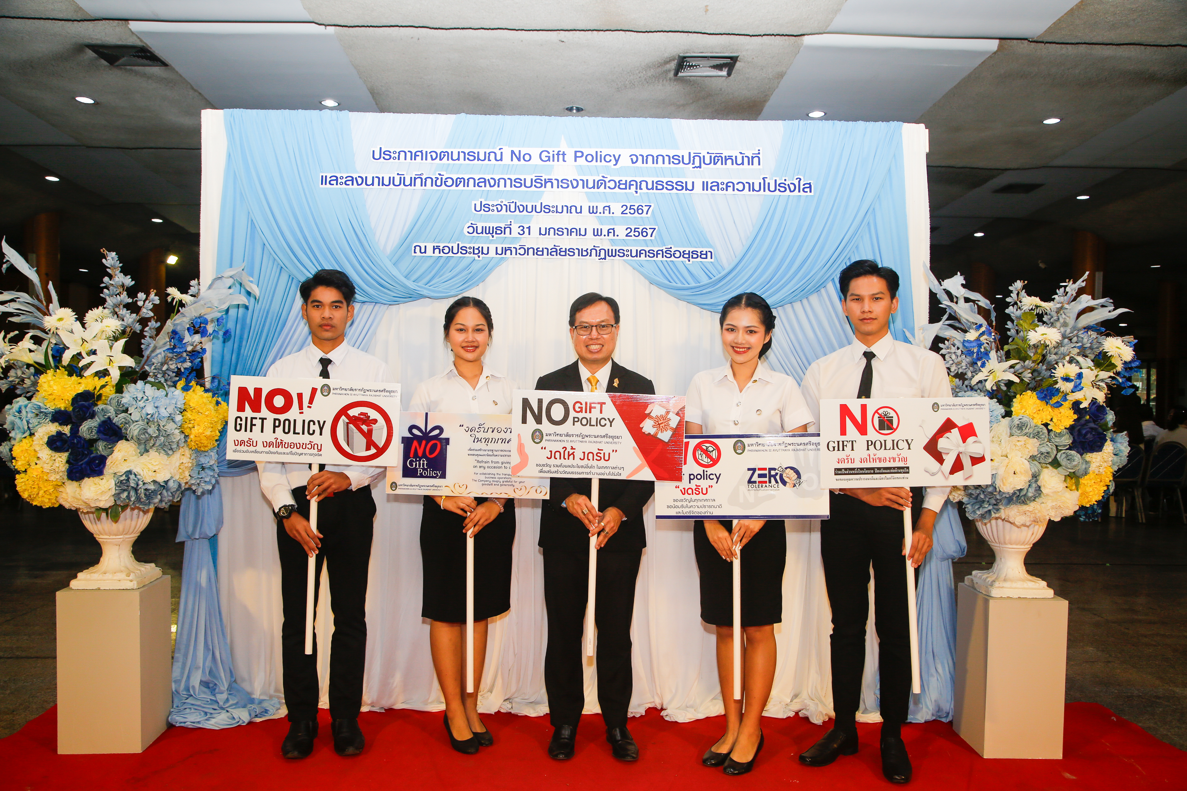 มหาวิทยาลัยราชภัฏพระนครศรีอยุธยาประกาศเจตนารมณ์ No Gift Policy และลงนามบันทึกข้อตกลงการบริหารงานด้วยคุณธรรมและความโปร่งใส