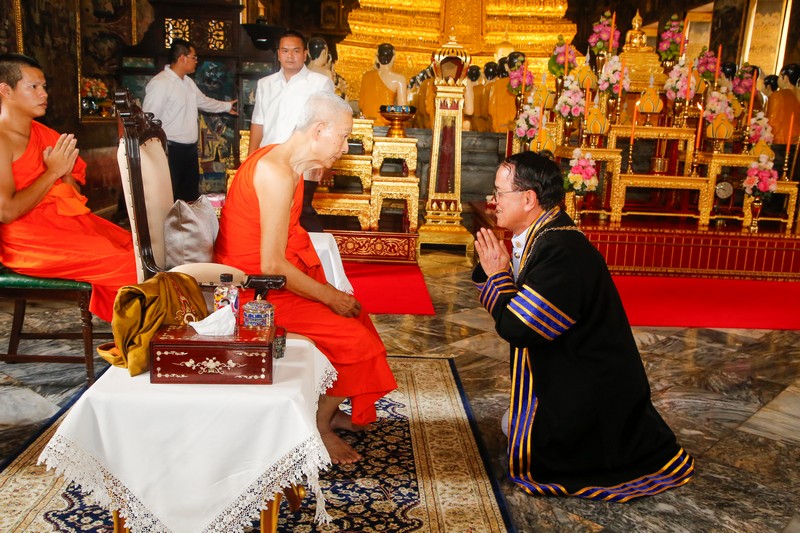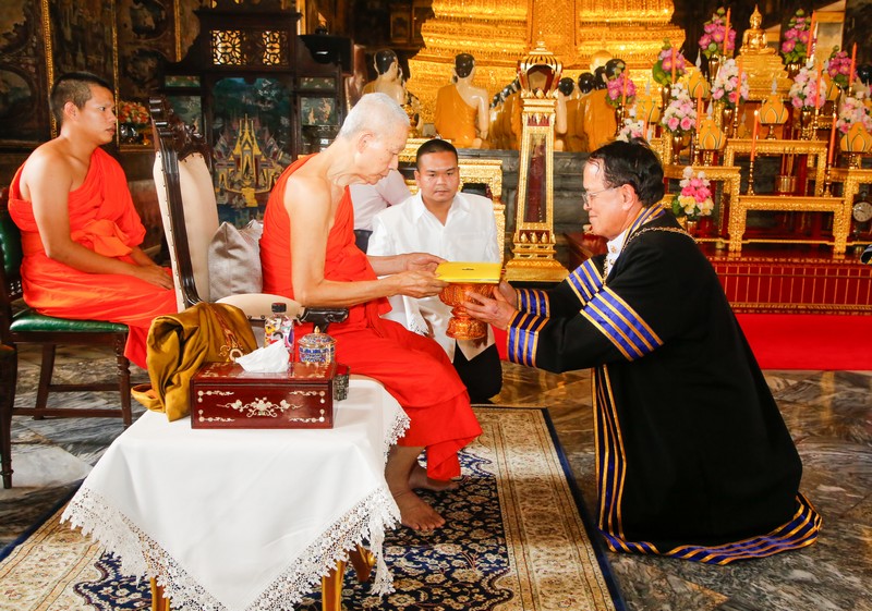 ถวายปริญญาครุศาสตรดุษฎีบัณฑิตกิตติมศักดิ์แด่พระพรหมวชิรมุนี (เชิด จิตฺตคุตฺโต ป.ธ.9) เจ้าอาวาสวัดสุทัศนเทพวรารามราชวรมหาวิหาร กรรมการมหาเถรสมาคม