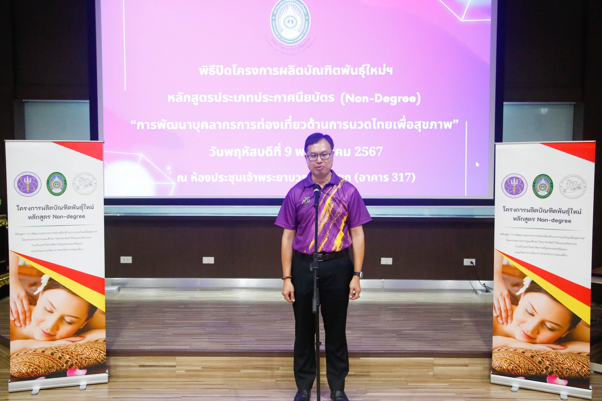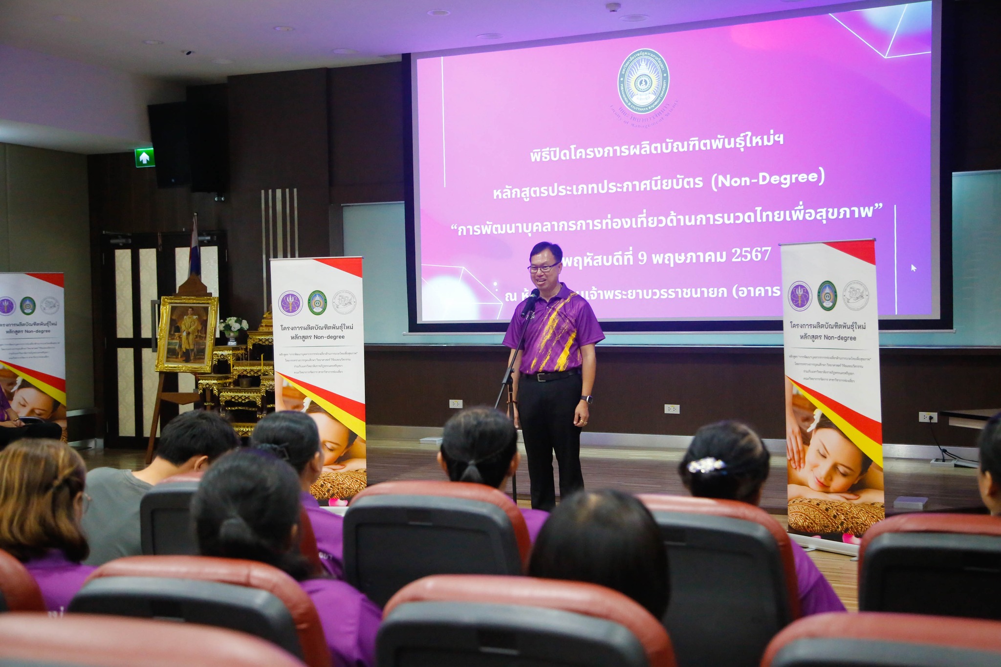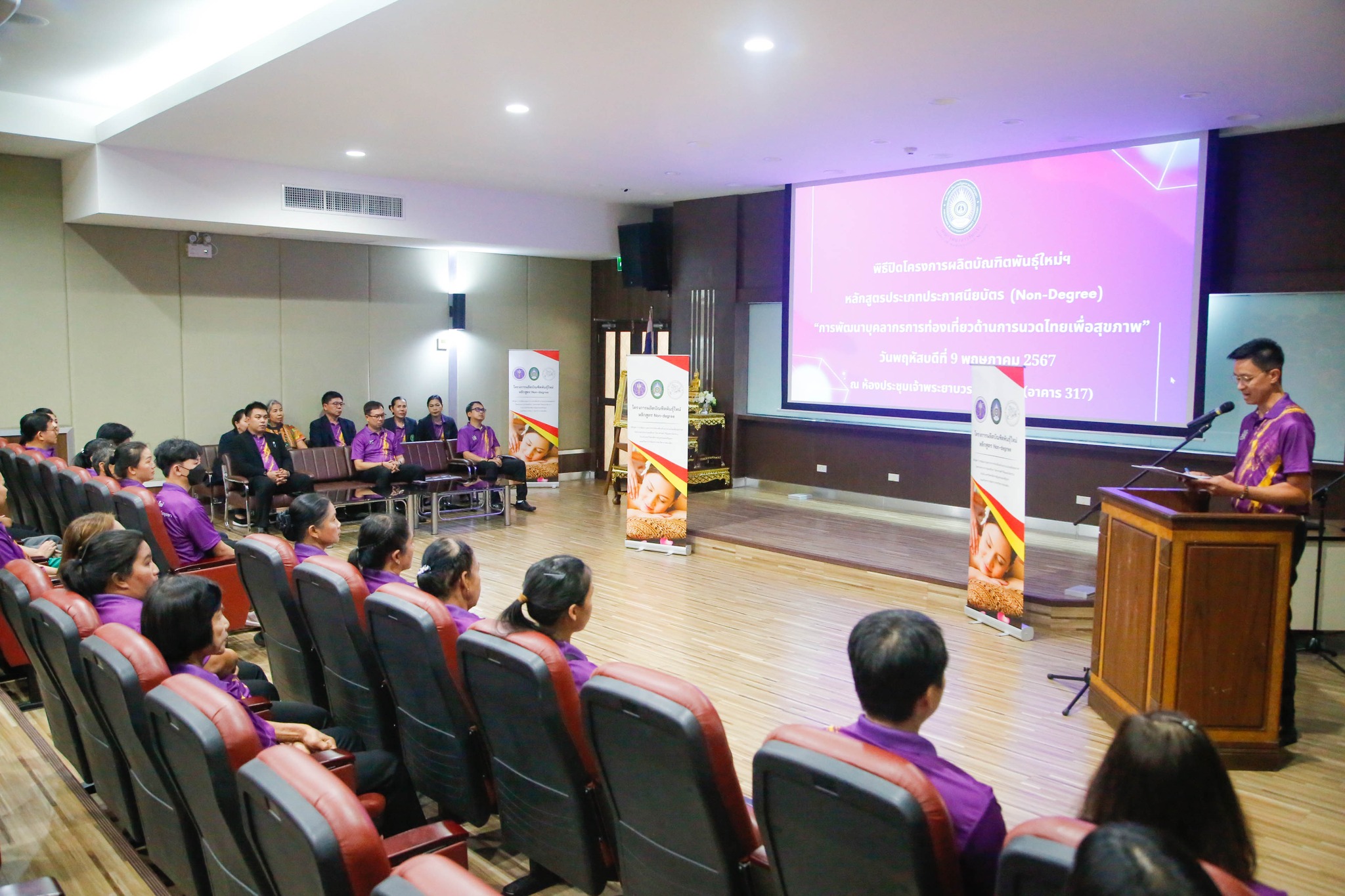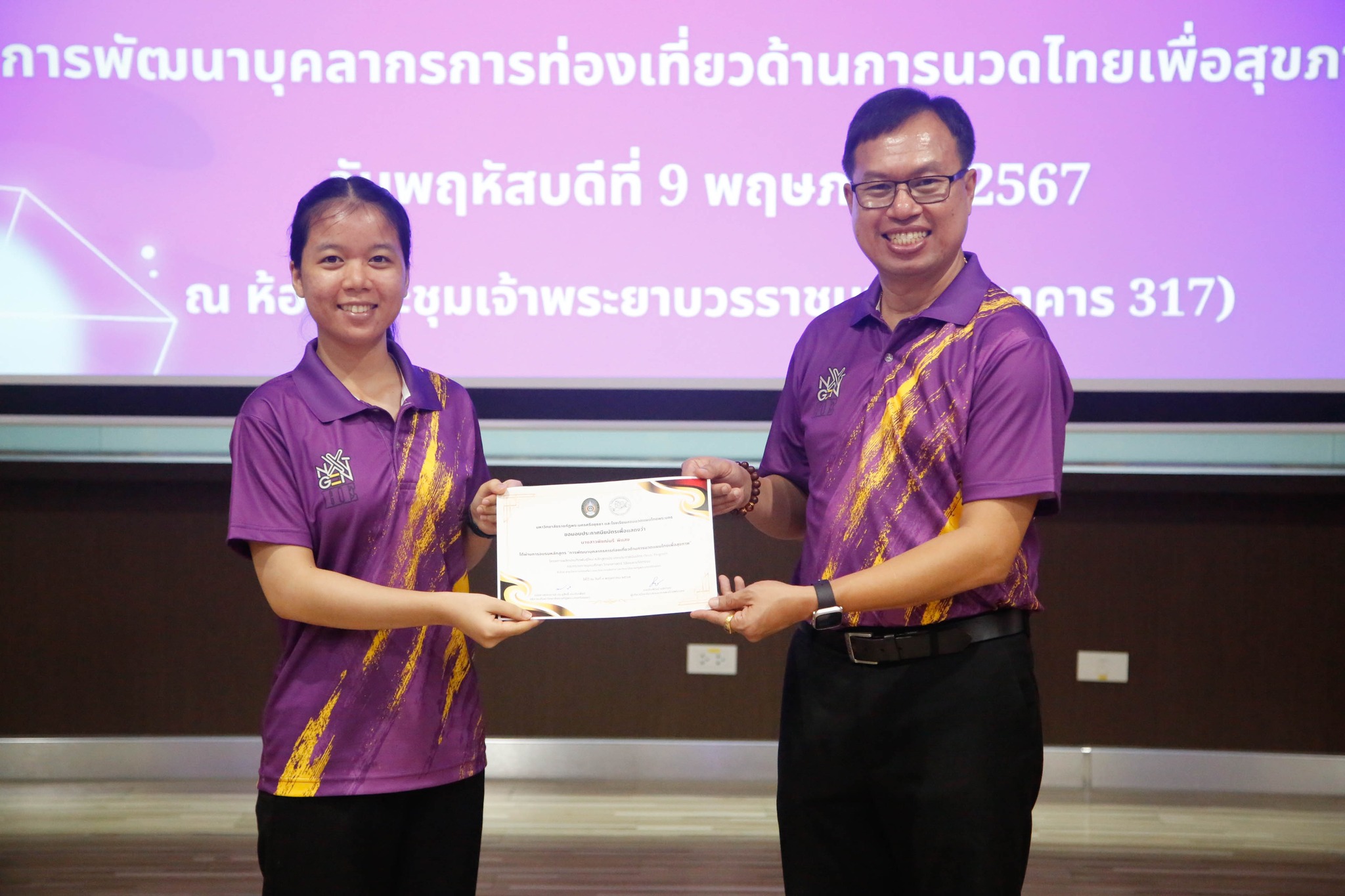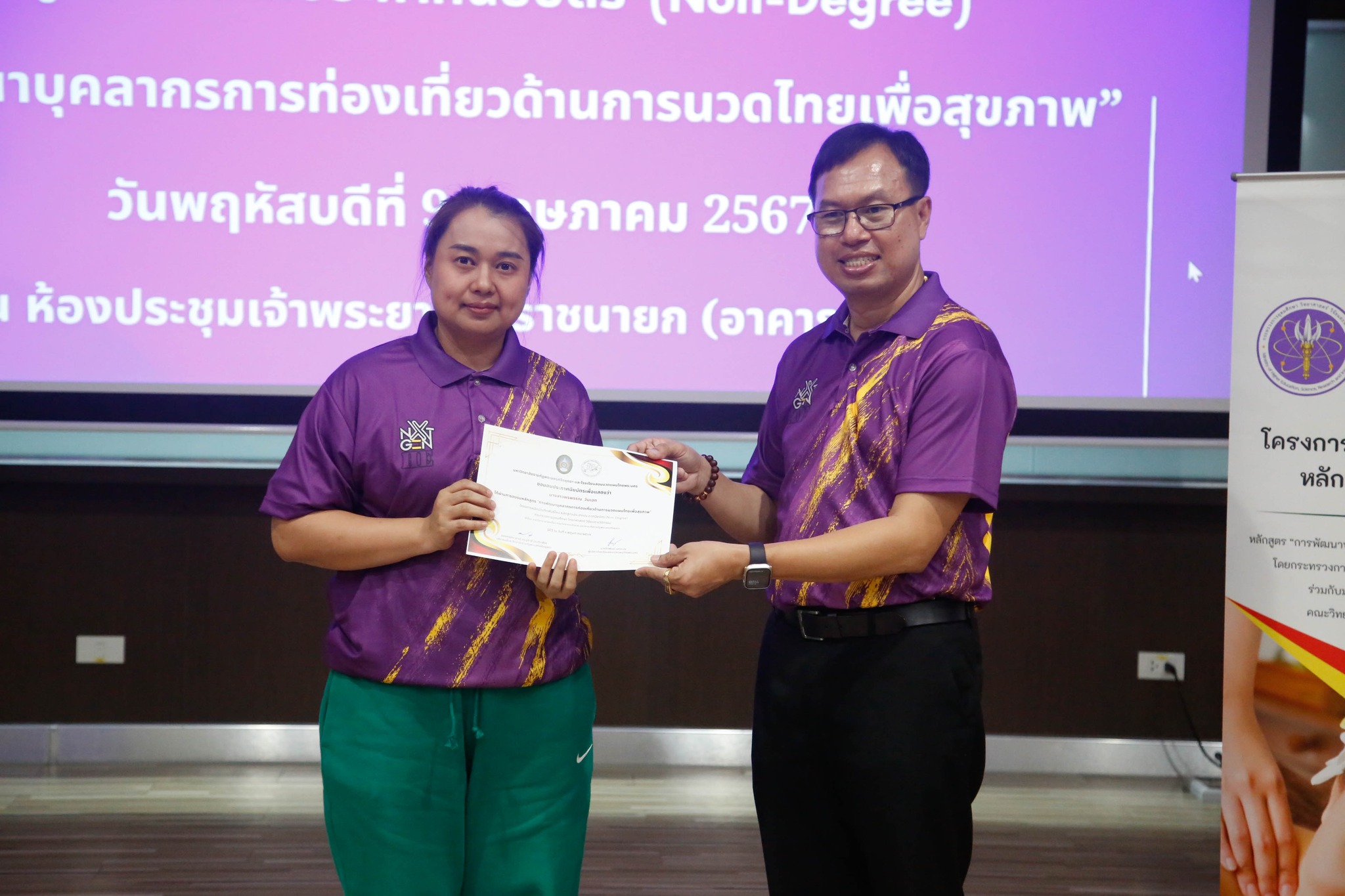 มอบใบประกาศนียบัตรโครงการผลิตบัณฑิตพันธุ์ใหม่ “หลักสูตรการพัฒนาบุคลากรการท่องเที่ยวด้านการนวดไทยเพื่อสุขภาพ” โดยสาขาวิชาการท่องเที่ยว
