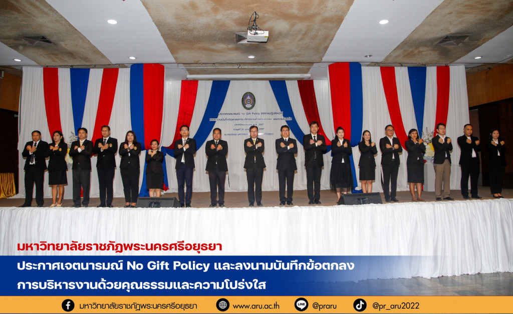 มหาวิทยาลัยราชภัฏพระนครศรีอยุธยาประกาศเจตนารมณ์ No Gift Policy และลงนามบันทึกข้อตกลงการบริหารงานด้วยคุณธรรมและความโปร่งใส