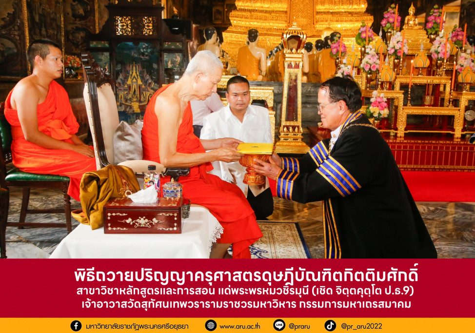 ถวายปริญญาครุศาสตรดุษฎีบัณฑิตกิตติมศักดิ์แด่พระพรหมวชิรมุนี (เชิด จิตฺตคุตฺโต ป.ธ.9) เจ้าอาวาสวัดสุทัศนเทพวรารามราชวรมหาวิหาร กรรมการมหาเถรสมาคม