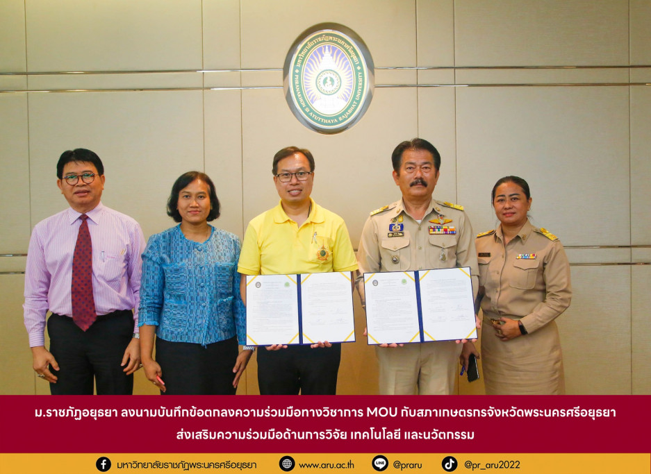 ม.ราชภัฏอยุธยา ลงนามบันทึกข้อตกลงความร่วมมือทางวิชาการ MOU กับสภาเกษตรกรจังหวัดพระนครศรีอยุธยา ส่งเสริมความร่วมมือด้านการวิจัย เทคโนโลยี และนวัตกรรม