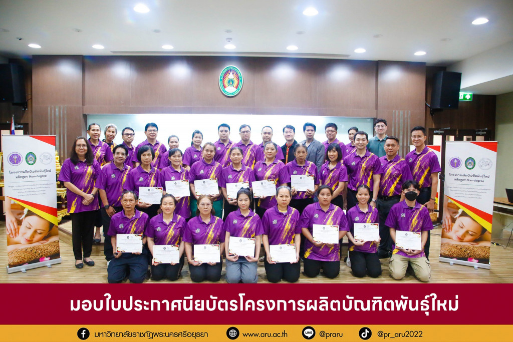 มอบใบประกาศนียบัตรโครงการผลิตบัณฑิตพันธุ์ใหม่ “หลักสูตรการพัฒนาบุคลากรการท่องเที่ยวด้านการนวดไทยเพื่อสุขภาพ” โดยสาขาวิชาการท่องเที่ยว