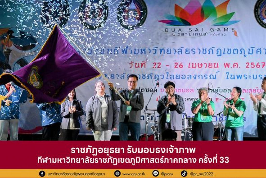 ราชภัฏอยุธยา รับมอบธงเจ้าภาพ กีฬามหาวิทยาลัยราชภัฏเขตภูมิศาสตร์ภาคกลาง ครั้งที่ 33