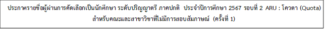 รายชื่อผู้ผ่านการคัดเลือกเป็นนักศึกษา ระดับปริญญาตรี ภาคปกติ ประจำปีการศึกษา 2567