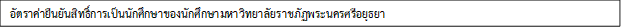 ทั้งนี้ หากผู้ผ่านการคัดเลือกเป็นนักศึกษาไม่รายงานตัวและยืนยันสิทธิ์เป็นนักศึกษา ภายในเวลาที่กำหนด มหาวิทยาลัยจะถือว่าท่านสละสิทธิ์การเป็นนักศึกษามหาวิทยาลัยราชภัฏพระนครศรีอยุธยา