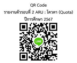 ขั้นตอนที่ 1 ให้ผู้ผ่านการคัดเลือกเป็นนักศึกษา ระดับปริญญาตรี ภาคปกติ ประจำปีการศึกษา 2567 รอบที่ 2 ARU : โควตา (Quota) สำหรับคณะและสาขาวิชาที่ไม่มีการสอบสัมภาษณ์ (ครั้งที่ 1) ทุกคน สแกนเข้ากลุ่มไลน์ ARU : โควตา (Quota) เพื่อรับข้อมูลข่าวสารสำหรับนักศึกษาใหม่ ได้ที่