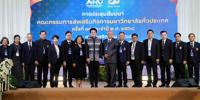วันเสาร์ที่ 8 พฤศจิกายน 2568 มหาวิทยาลัยราชภัฏพระนครศรีอยุธยา ได้จัดการประชุมสัมมนาคณะกรรมการส่งเสริมกิจการมหาวิทยาลัยทั่วประเทศ ครั้งที่ 10 ภายใต้แนวคิด “Soft Power รักษ์ไทย รักษ์ธรรม เลิศล้ำมรดกโลก” ณ หอประชุมมหาวิทยาลัยราชภัฏพระนครศรีอยุธยา โดยได้รับเกียรติจากนายสุรศักดิ์ พันธ์เจริญวรกุล รัฐมนตรีว่าการกระทรวงการอุดมศึกษา วิทยาศาสตร์ วิจัยและนวัตกรรม เป็นประธานเปิดการประชุมสัมมนา ก่อนเข้าสู่พิธีเปิด ผู้เข้าร่วมงานได้รับชมการแสดงศิลปวัฒนธรรมต้อนรับชุด “เรืองรอง Soft Power อยุธยา” จากนักศึกษาสาขาวิชานาฏศิลป์ศึกษา คณะมนุษยศาสตร์และสังคมศาสตร์ ซึ่งสะท้อนความงดงามของศิลปวัฒนธรรมไทยและอัตลักษณ์แห่งกรุงเก่าได้อย่างวิจิตรตระการตา จากนั้นรองศาสตราจารย์ ดร.ชูสิทธิ์ ประดับเพ็ชร์ อธิการบดีมหาวิทยาลัยราชภัฏพระนครศรีอยุธยา กล่าวต้อนรับผู้เข้าร่วมประชุม ทั่วประเทศ พร้อมด้วย ดร.ปรีชา ประสพผล ประธานคณะกรรมการส่งเสริมกิจการมหาวิทยาลัยราชภัฏพระนครศรีอยุธยา กล่าวรายงานวัตถุประสงค์การจัดงาน ภายหลังพิธีเปิด รัฐมนตรีว่าการกระทรวง อว. ได้บรรยายพิเศษหัวข้อ “นโยบาย Quick Wins ในการยกระดับการศึกษาและทรัพยากรมนุษย์ให้ก้าวทันโลก” โดยมุ่งเน้นแนวทางพัฒนาอุดมศึกษาไทยให้ตอบโจทย์ การเปลี่ยนแปลงของโลกยุค AI เสริมทักษะและศักยภาพของทรัพยากรมนุษย์ให้สามารถแข่งขันได้ในระดับนานาชาติการประชุมสัมมนาคณะกรรมการส่งเสริมกิจการมหาวิทยาลัยทั่วประเทศเป็นเวทีแลกเปลี่ยนความคิดเห็นและความร่วมมือระหว่างคณะกรรมการส่งเสริมกิจการมหาวิทยาลัยจากทั่วประเทศ โดยครั้งนี้ได้รับเกียรติจากประธานและคณะกรรมการส่งเสริมกิจการมหาวิทยาลัยเข้าร่วมทั้งสิ้น 31 แห่ง รวมทั้ง นายสุเทพ เทือกสุบรรณ ประธานคณะกรรมการส่งเสริมกิจการมหาวิทยาลัยราชภัฏสุราษฎร์ธานี ที่ให้เกียรติเข้าร่วมด้วย ช่วงท้ายของการประชุมสัมมนาได้มีการลงมติคัดเลือกเจ้าภาพในการจัดประชุมสัมมนาคณะกรรมการส่งเสริมกิจการมหาวิทยาลัยทั่วประเทศ ครั้งที่ 12 ซึ่งผลปรากฏว่ามหาวิทยาลัยราชภัฏพิบูลสงครามได้รับเลือก