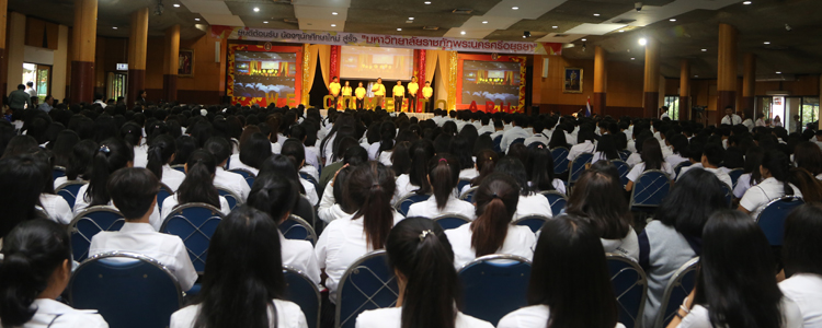 วันพฤหัสบดีที่ 26 กรกฎาคม 2561 สถาบันอยุธยาศึกษา จัดกิจกรรมอบรมให้ความรู้เรื่องอยุธยาศึกษา โดยได้รับเกียรติจาก อาจารย์ประพันธ์ แสงทองดี เป็นวิทยากรบรรยายเรื่อง “จริยธรรมสำหรับนักศึกษา” ให้กับนักศึกษาใหม่ ชั้นปีที่ 1 จากคณะมนุษยศาสตร์และสังคมศาสตร์ คณะวิทยาศาสตร์และเทคโนโลยี คณะครุศาสตร์ และคณะวิทยาการจัดการรวมทั้งวิทยากรจากสถาบันอยุธยาศึกษา ได้แก่ นายพัฑร์ แตงพันธ์ และ นายปัทพงษ์ ชื่นบุญ นักวิชาการศึกษา บรรยายให้ความรู้เรื่องประวัติความเป็นมาและแหล่งโบราณสถานภายในมหาวิทยาลัยราชภัฏพระนครศรีอยุธยา ประวัติศาสตร์และวัฒนธรรมอยุธยา ณ หอประชุมมหาวิทยาลัยราชภัฏพระนครศรีอยุธยา