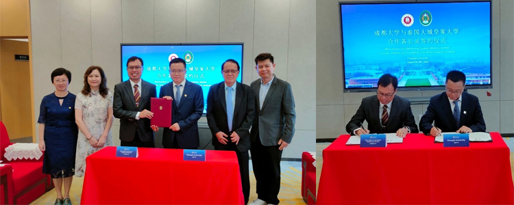ระหว่างวันที่ 7 – 10 กันยายน 2566 มหาวิทยาลัยราชภัฏพระนครศรีอยุธยา โดย รองศาสตราจารย์ ดร.ชูสิทธิ์ ประดับเพ็ชร์ อธิการบดี ได้เดินทางไปยังมหาวิทยาลัยเฉิงตู สาธารณรัฐประชาชนจีน เพื่อเข้าร่วมพิธีลงนามบันทึกข้อตกลงความร่วมมือ MOU ร่วมกับ Prof. Wang Qingyuan, Ph.D. อธิการบดีมหาวิทยาลัยเฉิงตู โดยมี ศาสตราจารย์ ดร.คณิต เขียววิชัย นายกสภามหาวิทยาลัย รองศาสตราจารย์ ดร.สาโรช พูลเทพ ที่ปรึกษาอธิการบดีด้านการต่างประเทศ อาจารย์ ดร.สุดารัตน์ เกลี้ยงสอาด ผู้ช่วยอธิการบดีฝ่ายกิจการพิเศษ รองศาสตราจารย์ ดร.กานดา เต๊ะขันหมาก รองคณบดีคณะมนุษยศาสตร์และสังคมศาสตร์ และอาจารย์นภัสสรณ์ เหลืองศักดิ์ศรี ประธานบริหารหลักสูตรสาขาวิชาภาษาจีน เข้าร่วมเป็นสักขีพยานในพิธีลงนาม ทั้งนี้ข้อตกลงความร่วมมือมีวัตถุประสงค์เพื่อ แลกเปลี่ยนอาจารย์ นักศึกษา วัฒนธรรม การจัดทำสื่องานวิจัย เอกสารสิ่งพิมพ์ และพัฒนาการทำวิจัยร่วมกัน ตลอดจนกิจกรรมและโครงการอื่น ๆ ที่ทั้งสองฝ่ายมีความสนใจร่วมกัน และนอกเหนือจากการลงนามความร่วมมือแล้วยังมีการริเริ่มโครงการจัดตั้งสถาบันขงจื๊อในมหาวิทยาลัยราชภัฏพระนครศรีอยุธยา โดยการสนับสนุนของมหาวิทยาลัยเฉิงตู ซึ่งจะมีการร่างบันทึกข้อตกลง (Memorandum of Agreement: MOA) ระหว่างหน่วยงานที่รับผิดชอบงานต่างประเทศของทั้ง 2 สถาบัน ซึ่งจะดำเนินการในคราวต่อไป ทั้งนี้คณะผู้บริหารของมหาวิทยาลัยราชภัฏพระนครศรีอยุธยา ยังได้เข้าเยี่ยมชมสถาบันไทยศึกษาของมหาวิทยาลัยเฉิงตู ที่มีการเปิดหลักสูตรสาขาวิชาไทยศึกษาที่มีนักศึกษาในสาขามากกว่า 120 คน ซึ่งในปีพุทธศักราช 2554 สมเด็จพระกนิษฐาธิราชเจ้า กรมสมเด็จพระเทพรัตนราชสุดาฯ สยามบรมราชกุมารี ได้เสด็จฯ เยือนมหาวิทยาลัยแห่งนี้ และได้รับการแต่งตั้งให้เป็นศาสตราจารย์กิตติมศักดิ์แห่งสาขาวิชาภาษาไทย