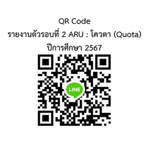 รอบที่ 2 ARU : โควตา (Quota) ทุกคน สแกนเข้ากลุ่มไลน์ ARU : โควตา (Quota) เพื่อรับข้อมูลข่าวสารสำหรับนักศึกษาใหม่ ได้ที่