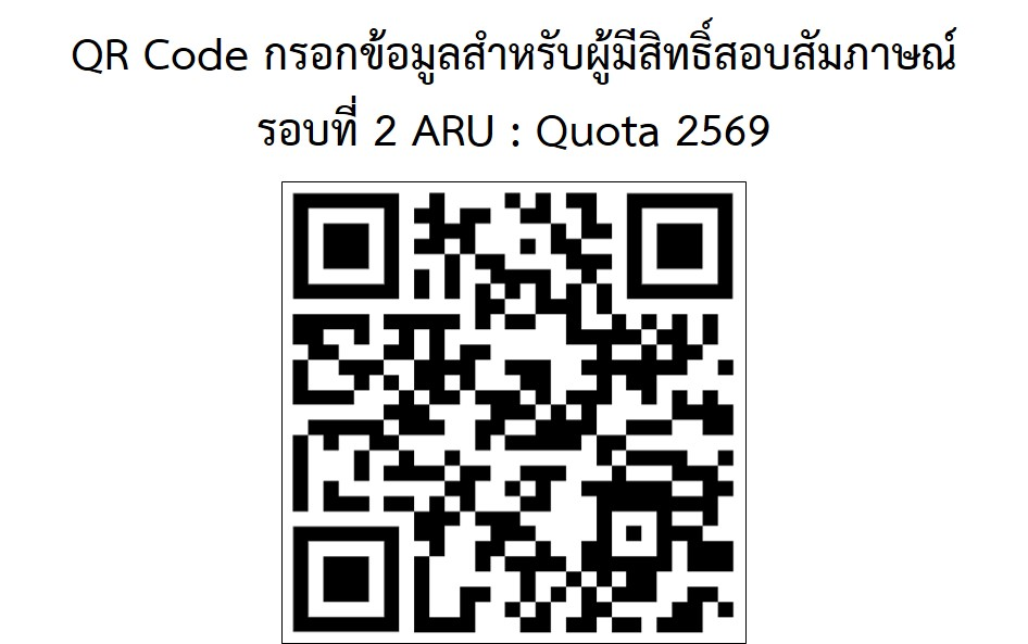 3) ผู้สมัครในหลักสูตรครุศาสตรบัณฑิต วิชาเอกพลศึกษา คณะครุศาสตร์ และหลักสูตรวิศวกรรมศาสตรบัณฑิต สาขาวิชาวิศวกรรมปัญญาประดิษฐ์ (ต่อเนื่อง) คณะวิทยาศาสตร์และเทคโนโลยี ไม่ต้องสอบสัมภาษณ์ ให้ติดตามประกาศรายชื่อผู้ผ่านการคัดเลือกเข้าศึกษา ในวันที่ 30 มกราคม 2569 เวลา 17.00 น. ที่ www.aru.ac.th หรือสอบถามข้อมูลได้ที่ กองบริการการศึกษา โทรศัพท์ 0 3524 1196