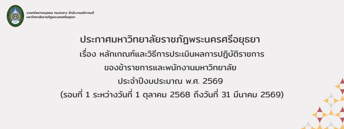 ประกาศมหาวิทยาลัยราชภัฏพระนครศรีอยุธยา เรื่อง รับสมัครสอบแข่งขันเพื่อบรรจุและแต่งตั้งบุคคลเข้าเป็นพนักงานมหาวิทยาลัย ตำแหน่งประเภทวิชาการ ครั้งที่ 26/2568 (สังกัดคณะมนุษยศาสตร์และสังคมศาสตร์)